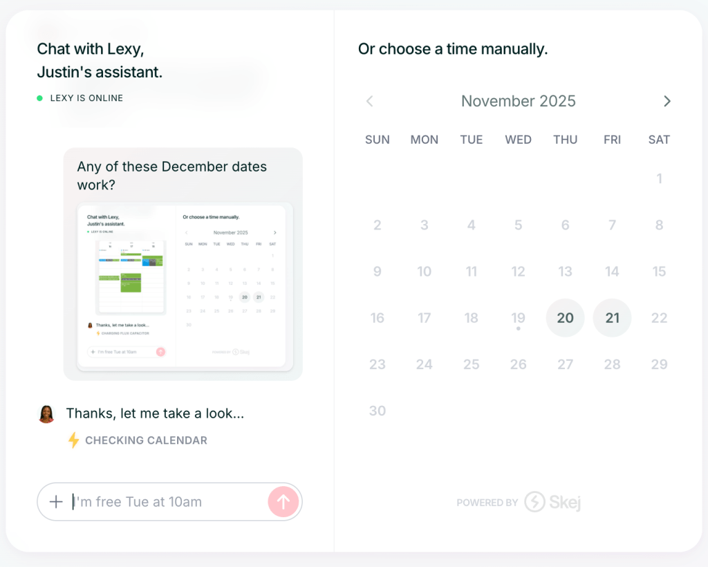 In 2025, the way people schedule has evolved. Calendars are more complex, teams are distributed, and everyone uses different tools to manage their time. The world needs a scheduling link that’s more flexible, more conversational, and more mutual.