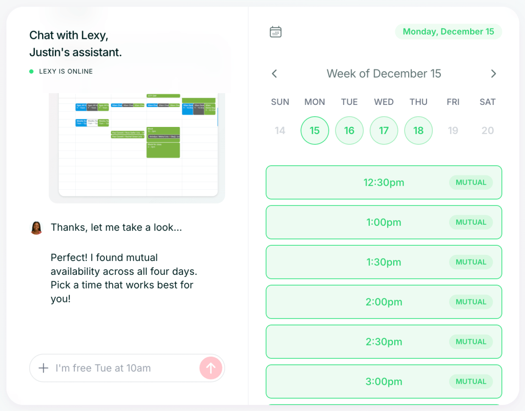 Your assistant interprets it instantly and finds the best mutual time.